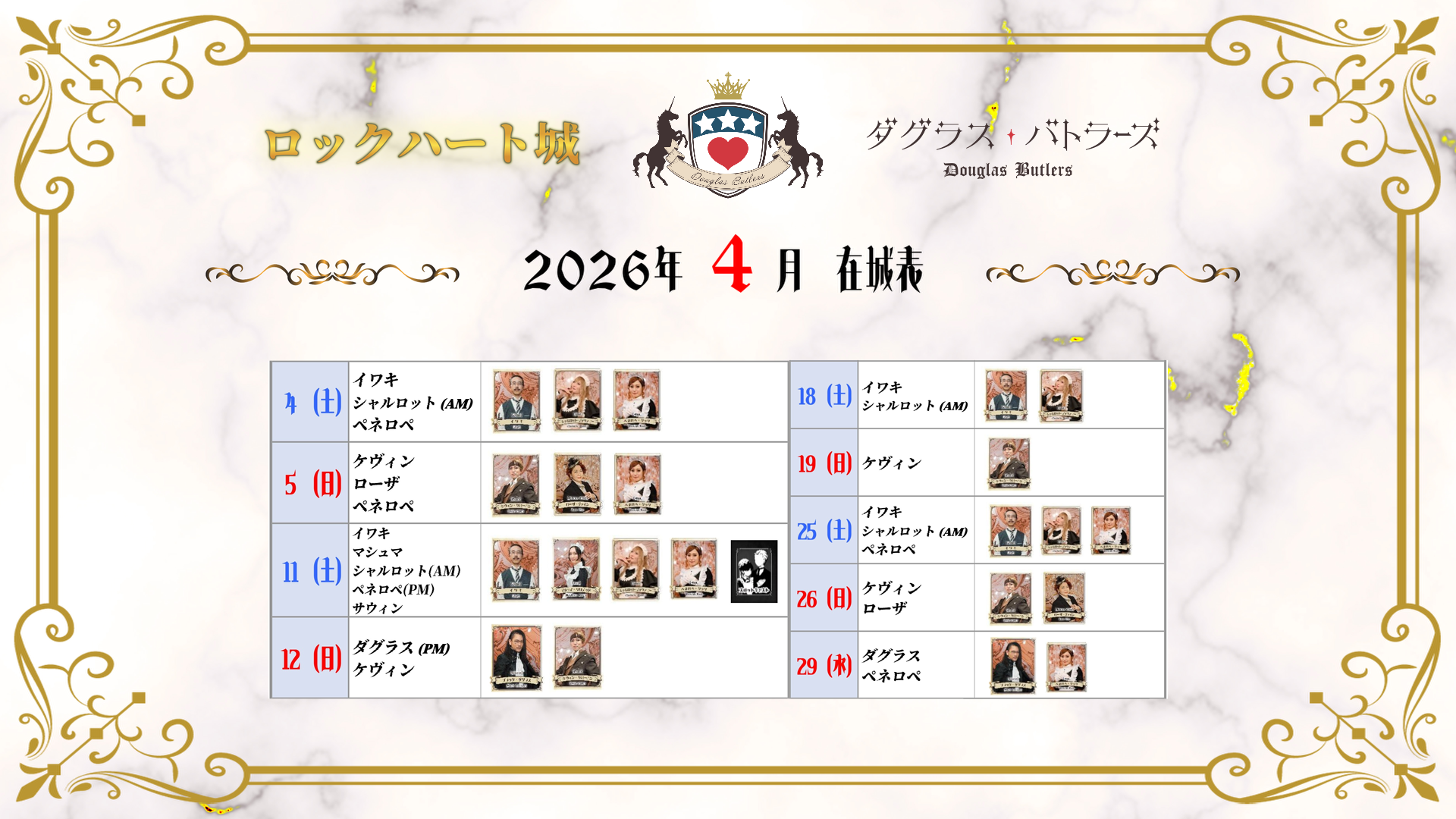 スコットランド解放の騎士であり、現代のロックハート城を居城とするマスター(主人)「ブラックダグラス卿」に仕える、執事とメイドたちで構成されたグリーティングキャストグループです。