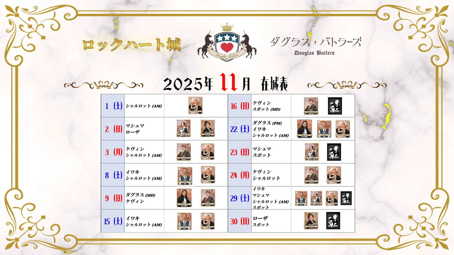 キャスト在城カレンダー